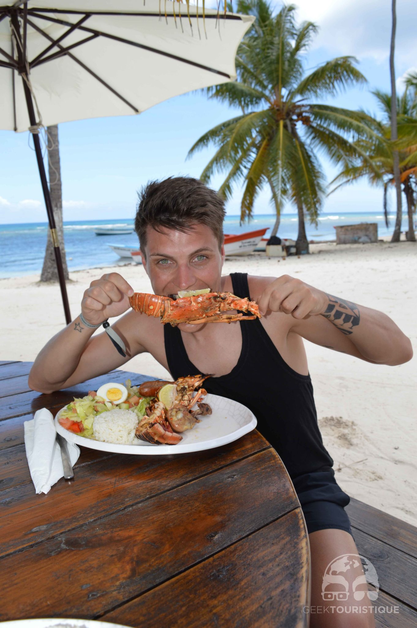 On est partis avec un guide, une photographe et 10 autres touristes pour une balade en bateau. 1h environ est nécessaire pour arriver sur l’île de Saona. Et là, le grand « Wahouuuu » ! Une plage paradisiaque (la même que tu vois sur les cartes postales) s’offrait à nous et surtout RIEN QUE POUR NOUS (sans l’excursion VIP, tu te serais retrouvé avec 200 touristes sur la plage) ! Bref, dans ce lieu idyllique, la photographe nous a fait un book chacun (sans qu’on lui demande) et nous a proposé, à la fin de la journée et sans aucune pression, l’achat des photos. (50€ le cd avec une soixantaine de photos, des clichés de la république dominicaine, et une playlist de musiques typiques : Et vu la qualité de son travail, on te recommande de le faire !)