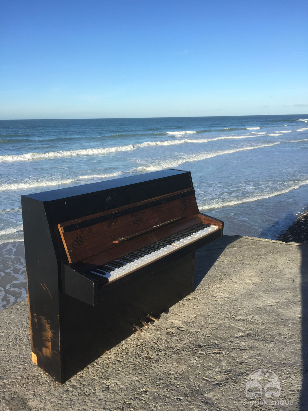 - Et puis, on a eu droit à une énorme surprise… En se baladant sur la plage, il y avait un piano ! Oui oui un vrai piano là comme ça, face à la mer.