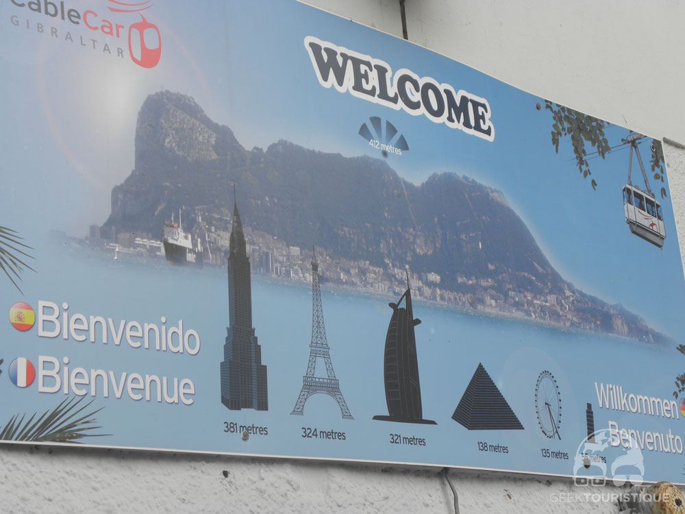 Quand tu arrives sur Gibraltar, un énorme rocher est là pour t’accueillir, tu ne peux pas le louper puisqu’il culmine tout de même à 426m d’altitude. D’ailleurs, il y a une excursion sympa à faire pour une dizaine d’euros (oui car, tu pourras payer en Euro et sans frais grâce à Sharepay :)) : tu peux prendre un téléphérique pour aller touuuuut en haut du rocher.