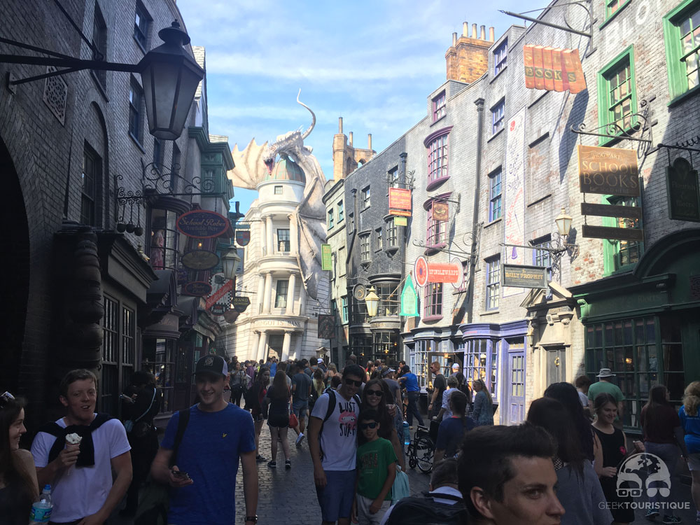 Cette partie là du parc est vraiment impressionnante : les boutiques, les décors, tout est très bien fait, très réalistes et surtout en cohésion avec les films / livres et tu as vraiment l’impression d’être arrivé chez Harry et ses amis ! Même les attractions sont hyper bien faites et nous donnent l’impression d’avoir des pouvoirs de sorcier. #TrueStory.