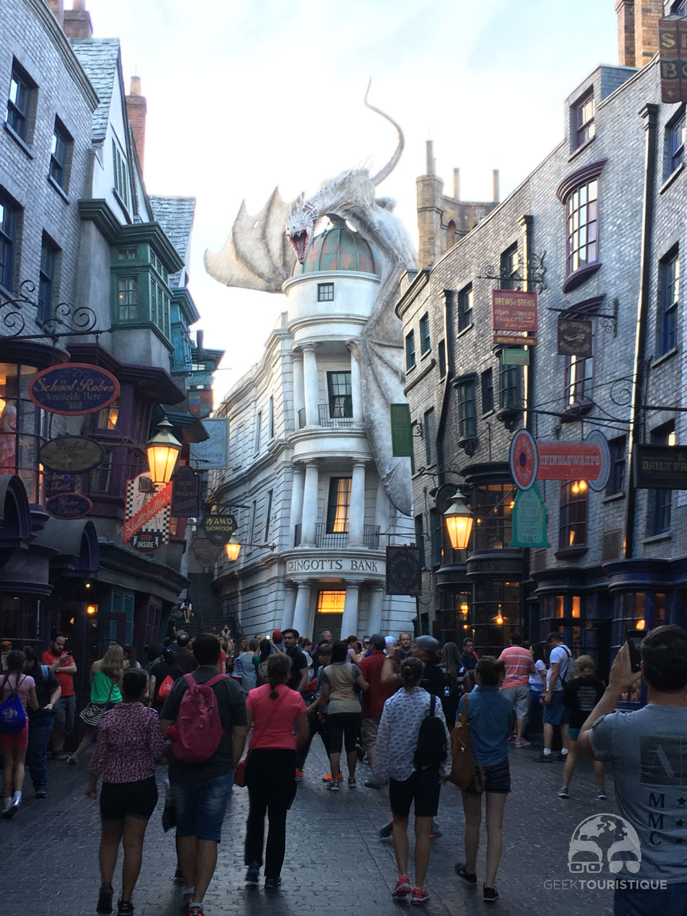 Gros plus pour la partie du parc sur Harry Potter ! Immersion est totale au pays des sorciers. Pour la petite anecdote, on recherchait cette partie dans le parc du coup on s’est approché d’une personne du parc pour lui demander notre chemin et sa réponse nous à fait rire : « Allez jusqu’à la gare, courrez droit dans le mur, vous arriverez aux pays des sorciers, face au dragon ! » Au début, on n’était pas certain d’avoir bien compris, mais en fait si, c’était bien ça !