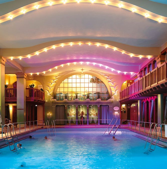 Le spa est superbe et se compose d’un sauna sec nordique, sauna aux herbes, hammam, petit bassin d’eau chaude, jacuzzi et une piscine très art déco où tu ne peux nager que dans le sens des aiguilles d’une montre (et attention, on ne rigole pas avec les règles Suédoises !).