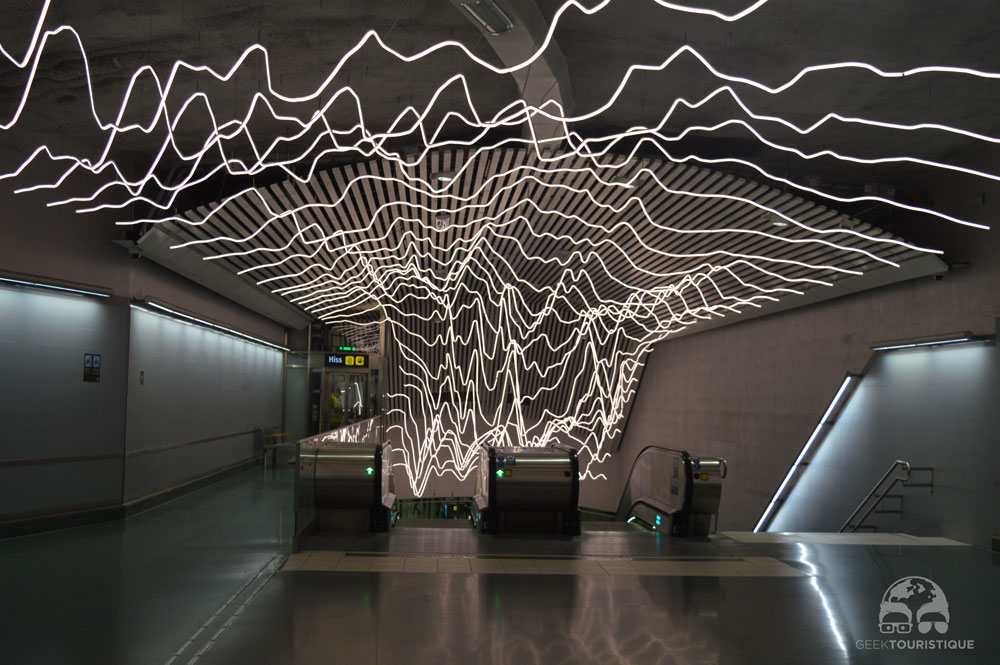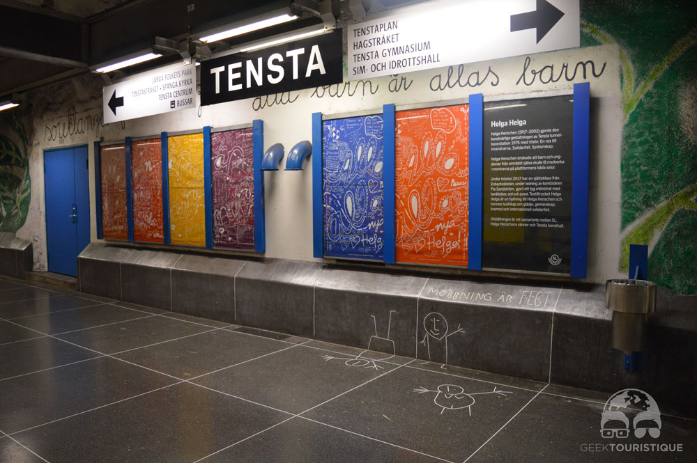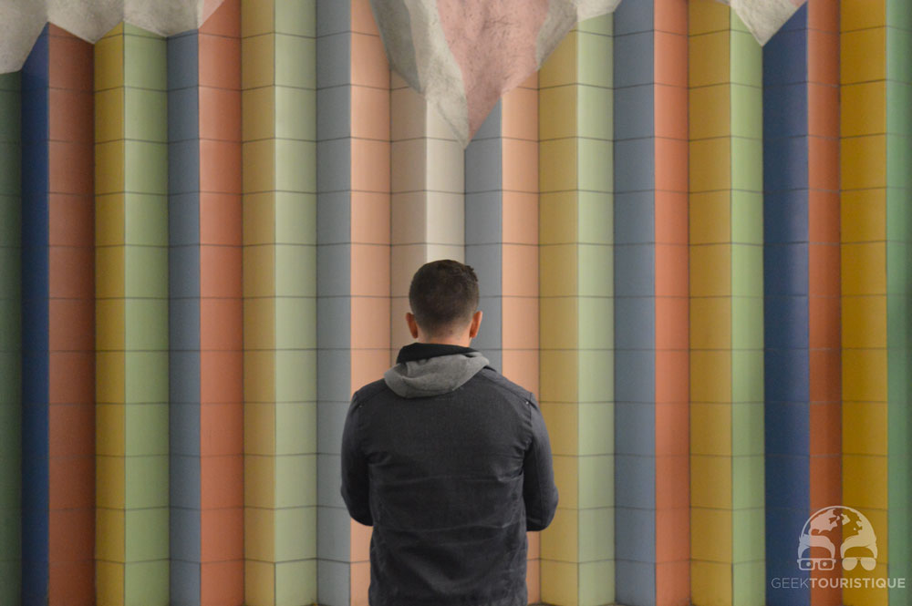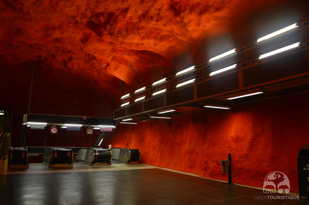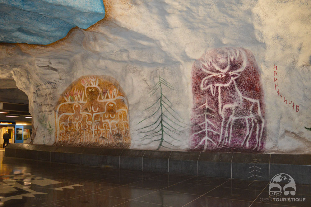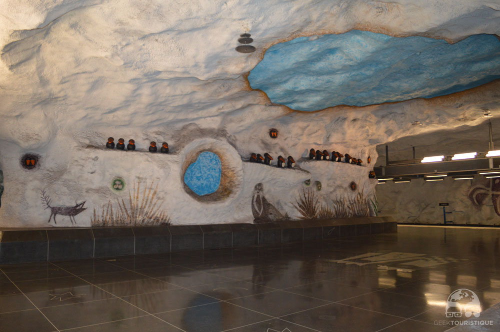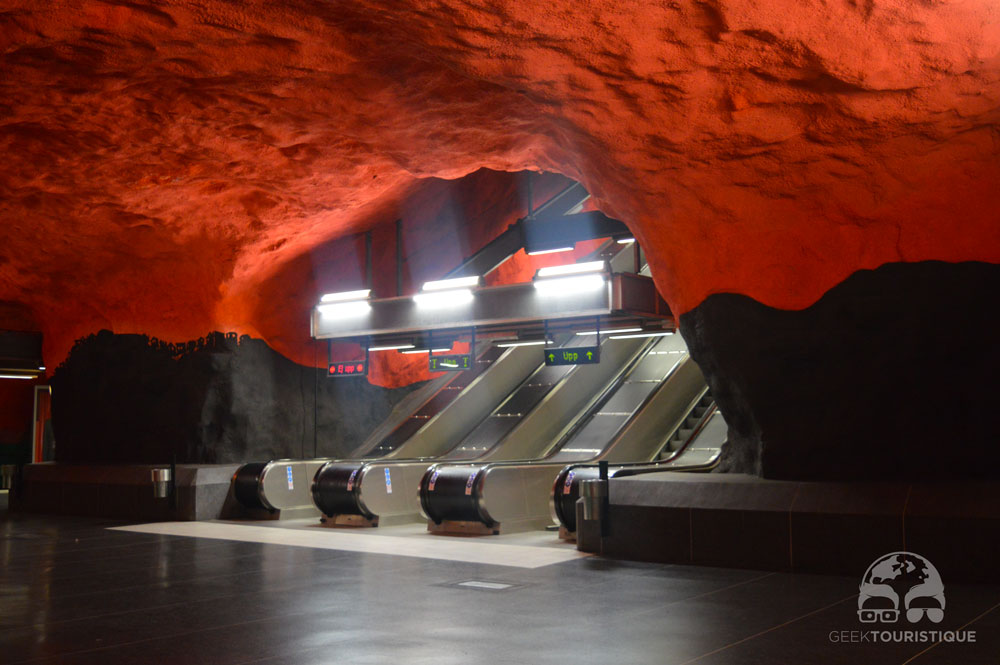 Stockholm, c’est un peu la ville du design (ou au moins d’Ikea quoi). Mais il y a un truc hyper réputé chez eux : les stations de métro. Sur visitStockholm.com on a répertorié toutes les stations de métro qu’il fallait absolument voir… 14 stations sont censées valoir le coup d’œil (en vrai, il y en a bien d’autres qui méritent un petit arrêt, on te laisse te perdre au grès des lignes pour les découvrir !) ! C’est donc dans le métro que nous avons passé notre première journée… et franchement ça vaut vraiment le coup, juge plutôt :