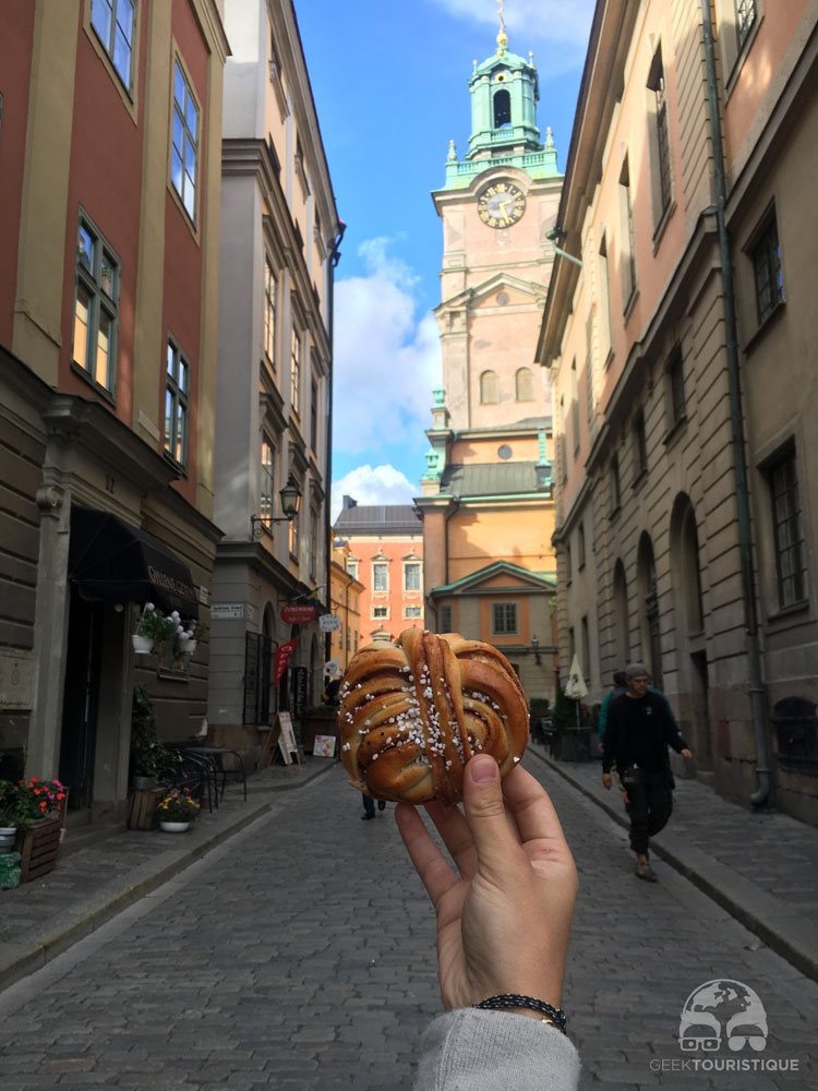 C’est aussi dans ce quartier qu’on a pris notre premier Fika (en gros c’est à l’heure du goûter où tu prends un moment pour soi et où tu consommes un café avec une pâtisserie traditionnelle à base de cannelle : le kanelbuller), un incontournable de la Suède !