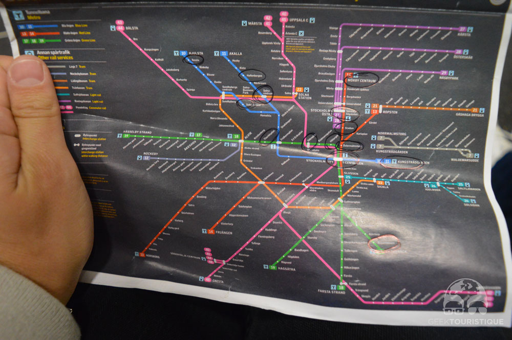 Une fois dans le centre de Stockholm, on a tout de suite acheté une carte de métro pour la semaine (32€ pour 6 jours contre près de 5€ le billet unique… le calcul est vite fait !) Surtout que cette carte te permet de monter dans tous les transports en commun (train, tram, métro, bus).